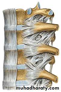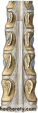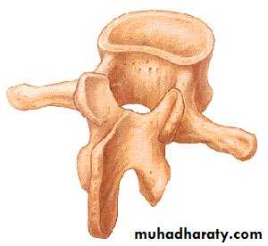 two strong bony areas called pedicles connecting the vertebral body and the posterior archan arch of bony structures in the back (posterior arch) = (the spinous process).