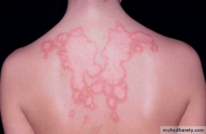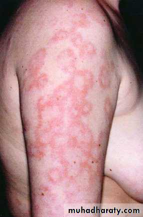 • rashes are migratory nonscarring and either• (psoriasiform)