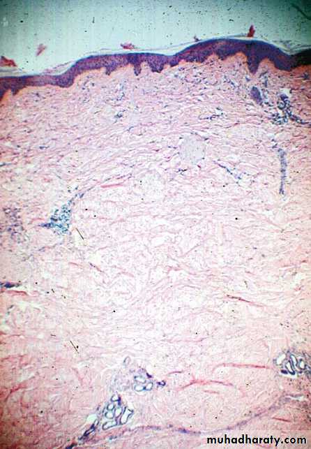 • mononuclear cell infiltrateat the dermo-epidermal junction ,around blood vessels and adnexial structures.