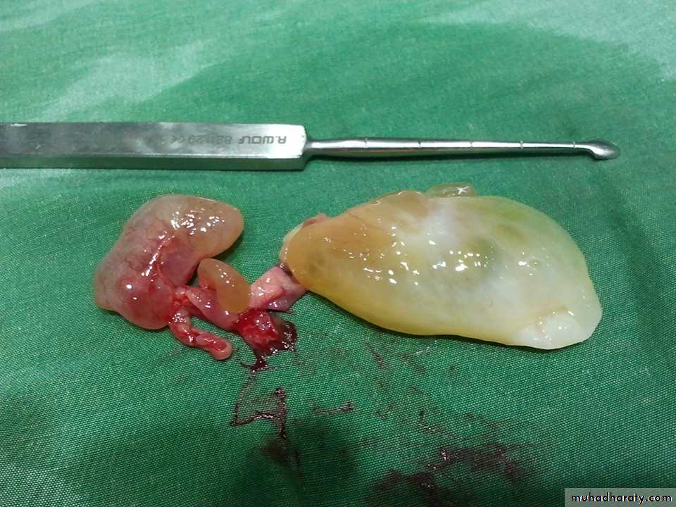 Description: mass dumppell large (5-6 cm), avascular (no bleeding), pale, whitish fibrostrak, yellowish color, gelly like appearance, with streak connected to other small red mass.