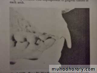 Type 3 – both maxillary and mandibular incisors incline lingually with impingement of the gingival tissues of each arch.