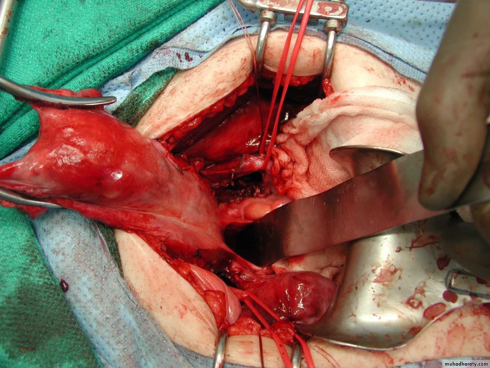 *The standered surgical procedure of cervical carcinoma is a Wertheim's radical abdominal hysterectomy which involves removal of the uterus, paracervical tissue, and upper vagina and pelvic lymph nodes.
