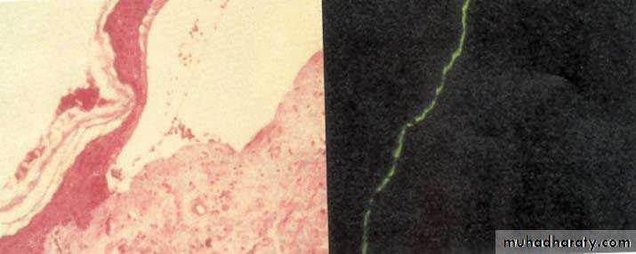 Antigen-antibody complex deposition in vessels of the dermis