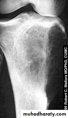 Seen mostly in the cortex of the metaphysis of long bones.Rarely if large may cause pathological fracture.