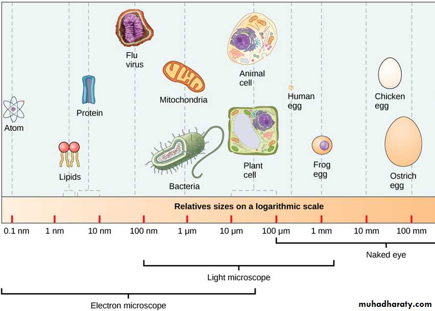 Figure 3.a Relative size of the cells organisms on logarithmic scales