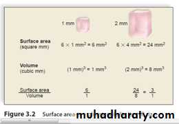 Yet, as cells become larger in volume, the proportionate amount of surface area actually decreases.