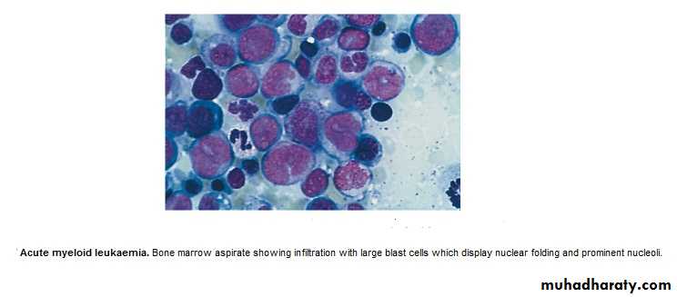 blast cells ( ˃ 20 % of the cells ),presence of Auer rods in the cytoplasm