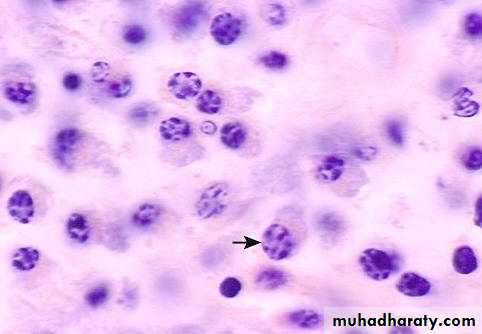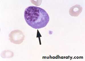 2) OVOID CYTOPLASM3) PERIPHERAL CHROMATIN
