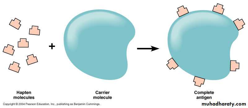 A hapten is a low-molecular-weight substance that cannot cause the formation of antibodies unless combined with a carrier molecule;But when combined with a larger carrier molecule (serum) function as antigen and stimulate response (their antibodies independent of the carrier molecule)