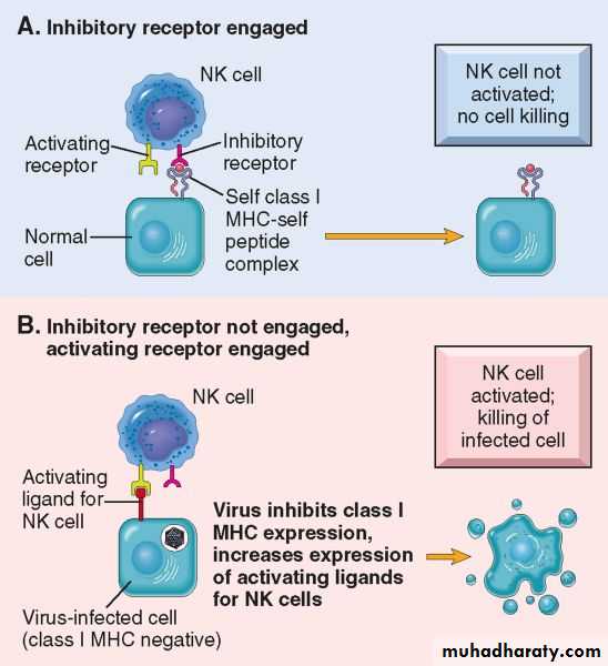 Natural killer (NK) cells are another kind of lethal white cell, or lymphocyte, can recognize surface markers on other cells labeled for destructionLike CTLs, NK cells are armed with granules filled with potent chemicals. But CTLs look for antigen fragments bound to self-MHC molecules, whereas NK cells recognize cells lacking self-MHC molecules. Thus, NK cells have the potential to attack many types of foreign cells.