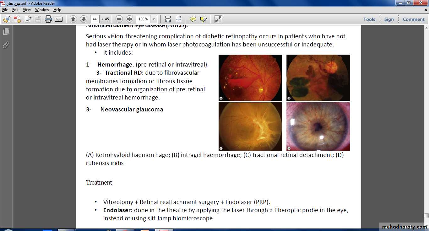 Tx :1-bed rest with head elevated 2-anti-glucoma drugs if increased IOP