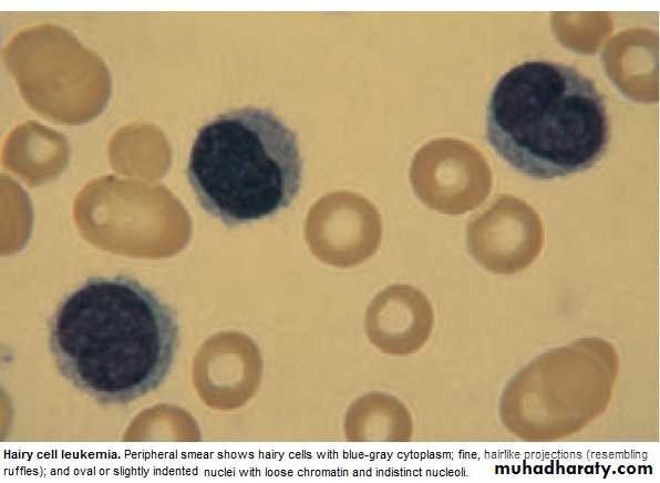 * Lab.: Severe Neutropenia, Monocytosis,& characteristic HAIRY CELL in Bl. & B.M..