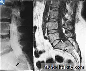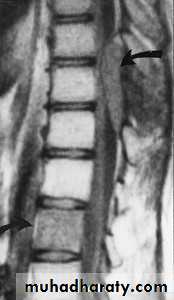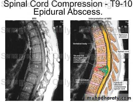 Diagnosis is by X-rays but preferably magnetic resonance imaging (MRI) of the whole spine. The most common causes of cord compression are tumors, but abscesses and granulomas (e.g. in tuberculosis ) are equally capable of producing the syndrome.If symptoms develop, prompt diagnosis and rapid treatment are crucial in order to avoid any permanent damage to the sensitive nerve tissue of the spinal cord. Usually, magnetic resonance imaging (MRI) or computed tomography (CT) scans will be performed to confirm cord compression and fully define the level and extent of the lesion.