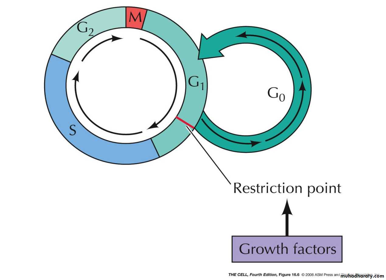 Availability of Growth factors controls the animal cell cycle at a point in the late G1 called the restriction point. If growth factors are not available during G1, the cells enter in a rest stage of the cycle (G0).