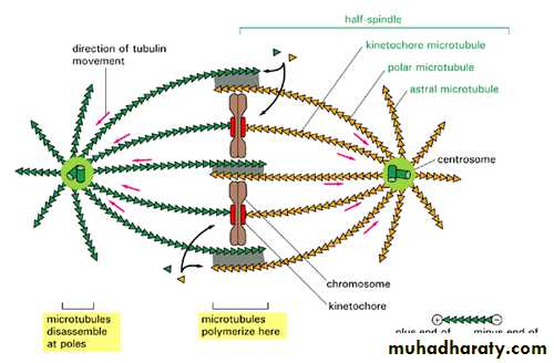 In this stage the nuclear envelope breaks down so there is no longer a recognizable nucleus. Some mitotic spindle fibers elongate from the centrosomes and attach to kinetochores, protein bundles at the centromere region on the chromosomes where sister chromatids are joined. Other spindle fibers elongate but instead of attaching to chromosomes, overlap each other at the cell center.Metaphase: Tension applied by the spindle fibers aligns all chromosomes in one plane at the center of the cell.