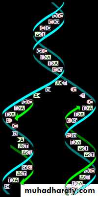 It has now been confirmed that DNA is replicated by means of complementary base pairing. During replication, each old DNA strand of the parent molecules serves as a template for a new strand in a daughter molecule. DNA replication is termed semiconsevative replication because each daughter helix contains an old strand and a new strand.