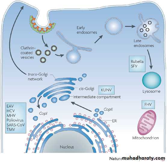 pathway. This involves, which bud from the trans Golgi network and deliver their contents to the appropriate cellular locations.