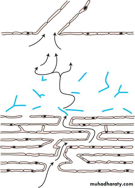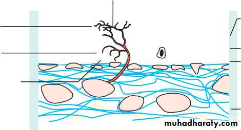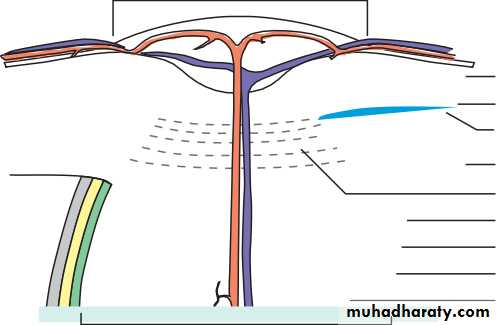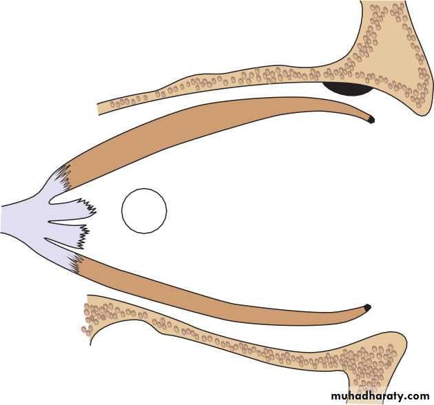 • Anteriorly, the conjunctiva is reflected from the sclera onto the underside of the upper and lower eyelids. A connective tissue layer (Tenon’s capsule) separates the conjunctiva from the sclera and is prolonged backwards as a sheath around the rectus muscles.