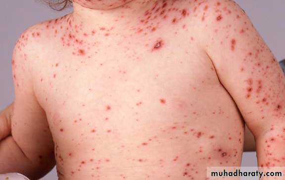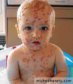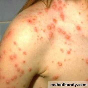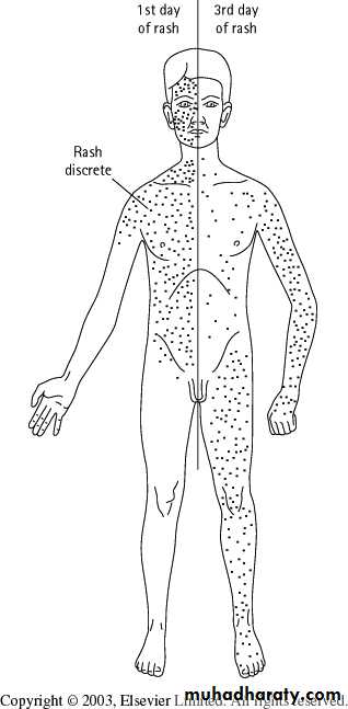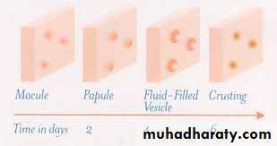 • Late in the secondary viremic phase, the virus is delivered to the skin, at which time the typical cutaneous lesions become evident.
