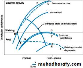 VENTRICULAR PERFORMANCE IS RELATED TO THE DEGREE OF MYOCARDIAL STRECHING , SO INCREASE PRELOAD WILL INHANCE FUNCTION , HOWEVER OVERSTRECHING WILL CAUSE MARKED DETERURATION
