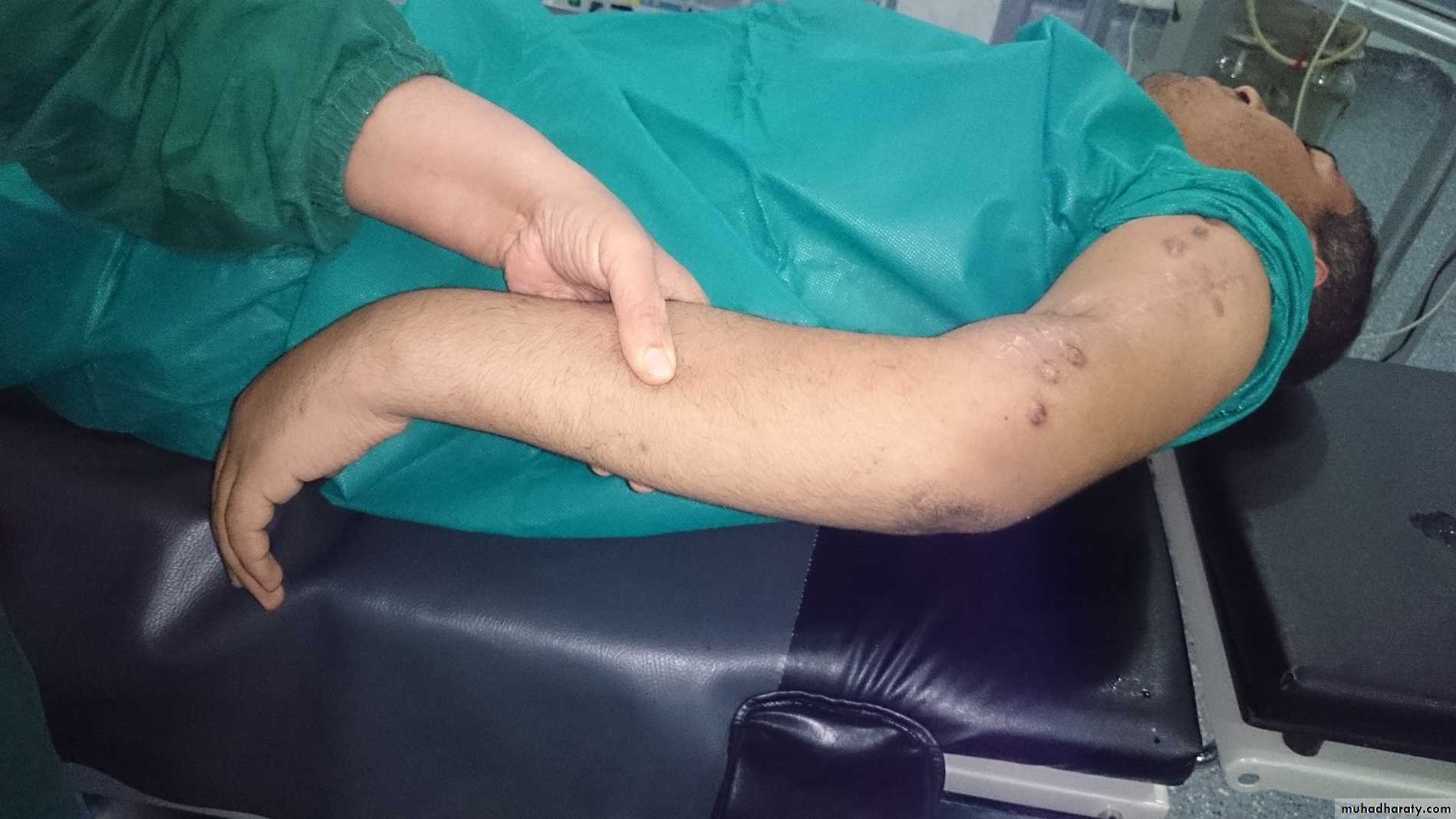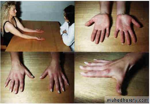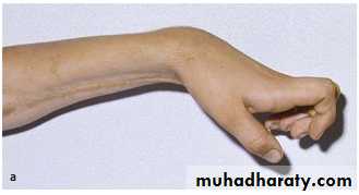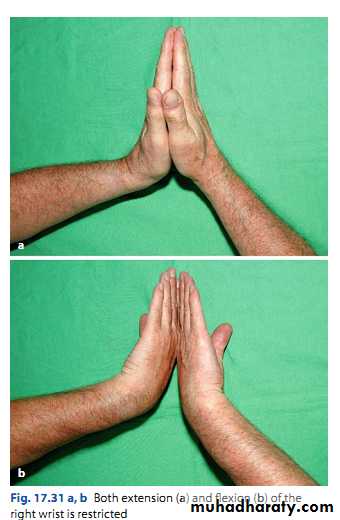Deformity: trauma, nerve injury (eg wrist drop).Loss of function; decreased grip strength.