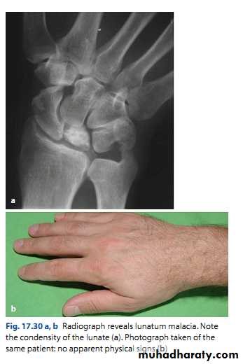 Ischemic necrosis of the lunate bone.Associated with excessive loading of the lunate.
