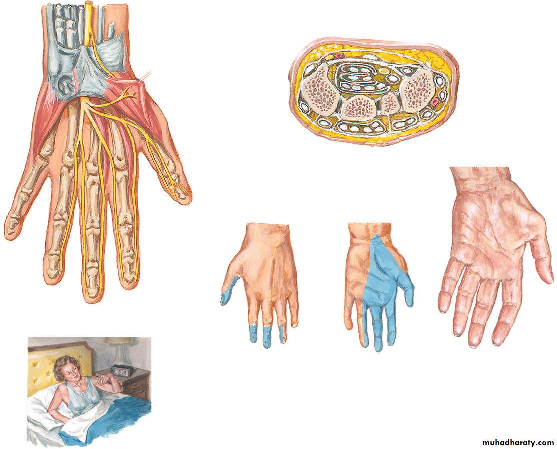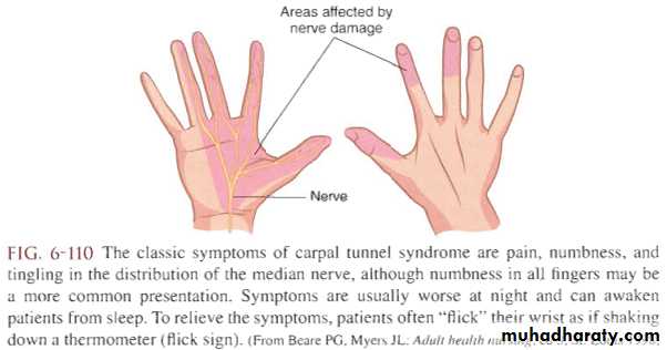 Examination:Tinel sign: symptoms reproduced by tapping over the median nerve.