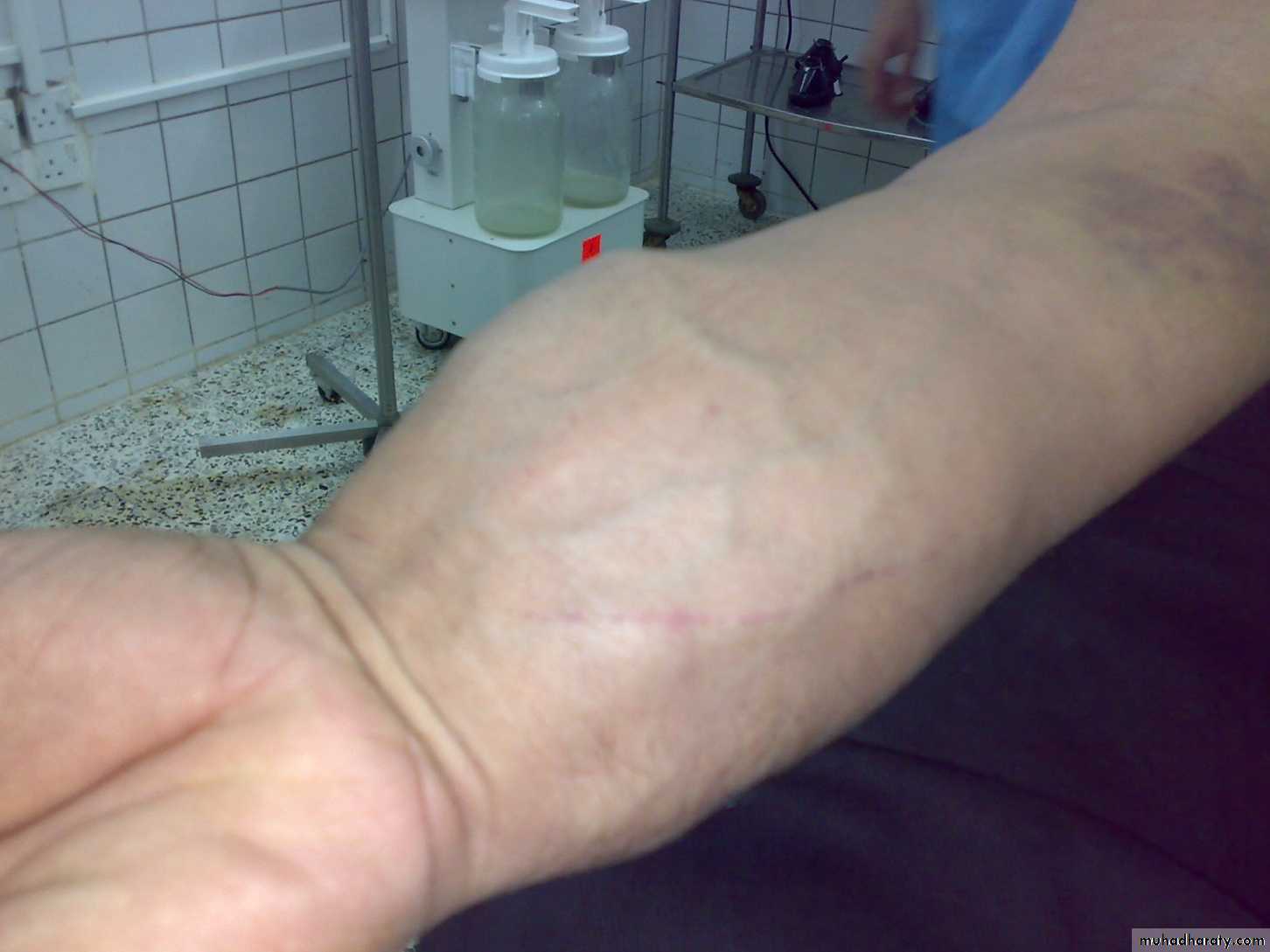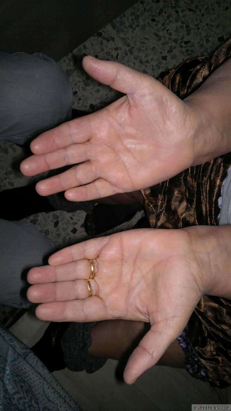 Pain:eg. Localized to radial side; tenosinovitis of the thumb tendons (De Quervain’s disease).