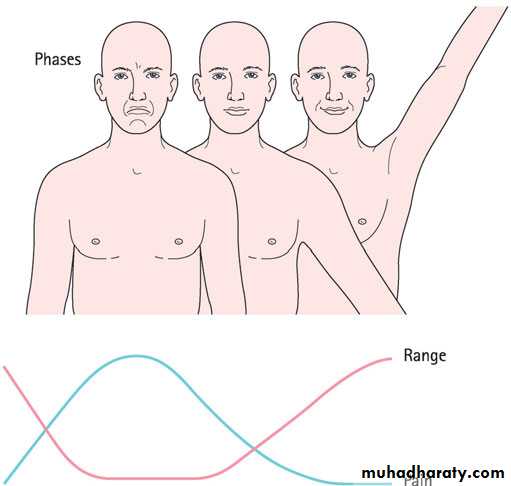 Subacute tendinitis – the ‘painful arc syndrome’, due to vascular congestion, microscopic haemorrhage and oedema.