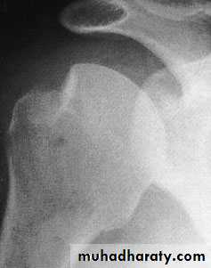 x-ray: The Hill–Sachs lesion (when it ispresent) is best shown by an anteroposterior x-ray with the shoulder internally rotated, or in the axillary view. Subluxation is seen in the axillary view.MRI or MR arthrography: bone lesions and labral tears.