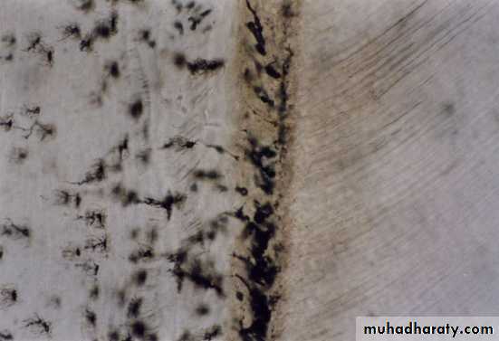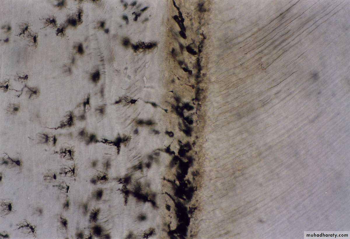 This layer represents areas where cells of Hertwig`s epithelial root sheat become trapped in a rapidly deposited dentin or cementum matrix.