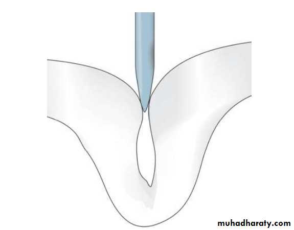 Sturdevant said cavitation at the base of a pit or fissure can be detected tactilely as softness, but mechanical binding of an explorer in the pits or fissures may be due to noncarious causes, like shape of the fissure, sharpness of the explorer, or the force of applicationUse of explorer is not advocated because;