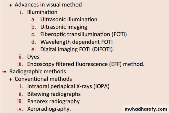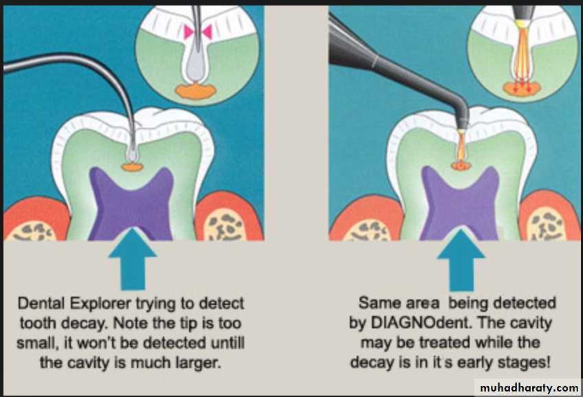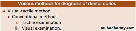 In this method explorer has been used for the tactile examination of the tooth for a long time.The explorer is used to detect softened tooth structure.
