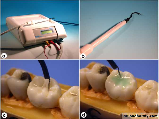 Illumination is delivered by means of fiberoptics from the light source to the tooth surface using a fiberoptic handpiece• Electrical Resistance Measurement