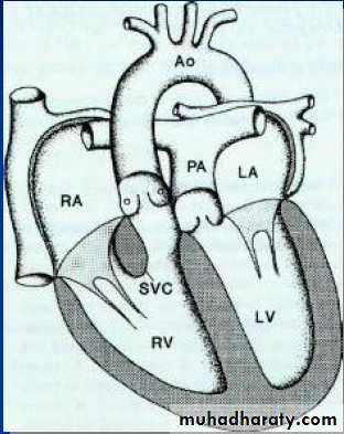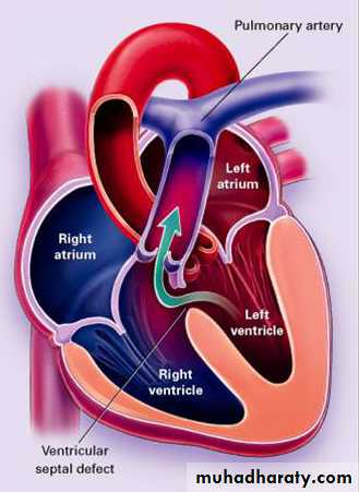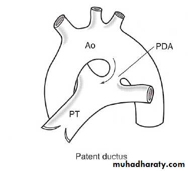 • Conditions with ↑ PBF: ( intar- or extracardiac Lt → Rt shunt “without” RV outflow obstruction): best examples VSD, PDA.