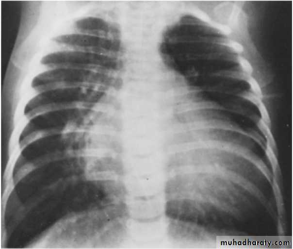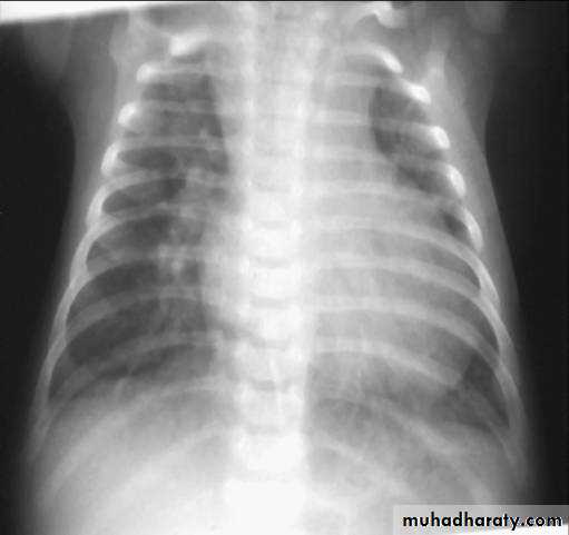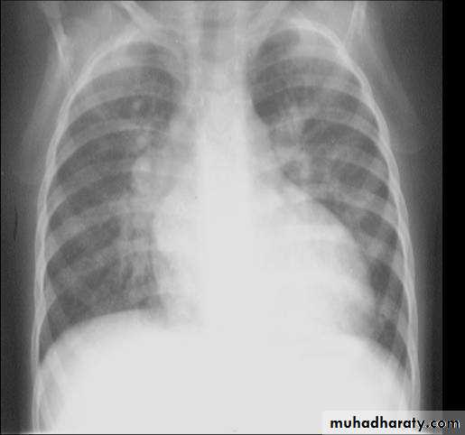• CXR: cardiomegaly, plethoric lung