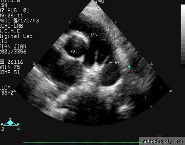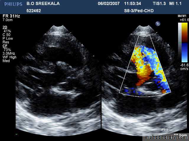 • Echocardiography :Defining the defect with “no PS”.
