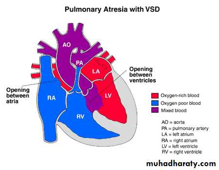 • VSD; ASD;PDA; TAPVD; TGA; Tricuspid atresia without (PS); Single ventricle without PS.