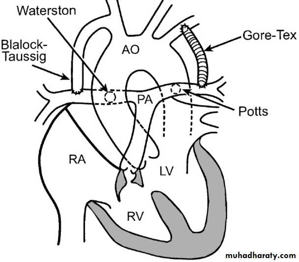 • Surgical Treatment:• Palliative: shunt operation (eg. BT shunt(1), Glenn operation(2))