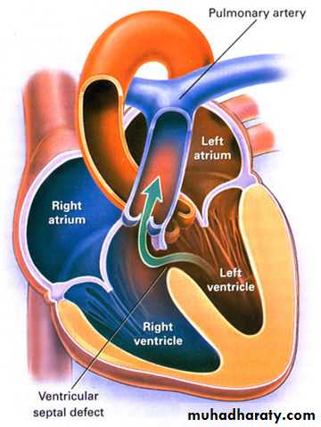 • Examples:Ventricular septal defect (VSD); Atrial septal defect (ASD); Patent ductus arteriosus (PDA); Total anomolus pulmonary venous drainage (TAPVD); Transposition of great arteries (TGA); Tricuspid atresia without pulmonary stenosis (PS); Single ventricle without PS.