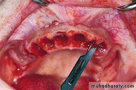 • A crestal incision is performed along the anterior ridge