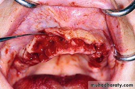 Mucoperiosteal flap reflected to expose the