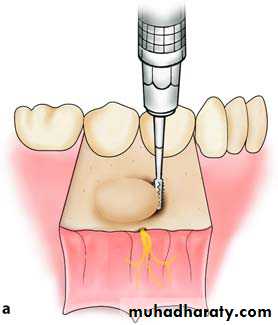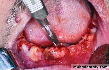 • Subperiosteal dissection is carried out to expose the mylohyoid ridge and muscle.