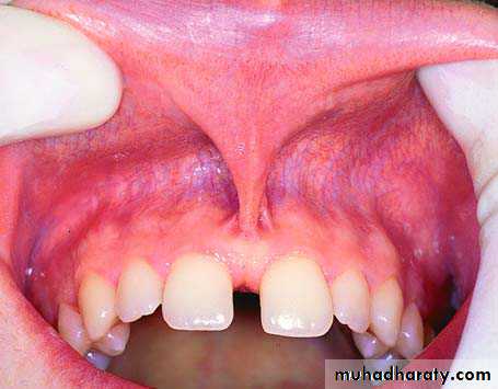 Various techniques have been described for removal of active and strong frenum attachments. These are ; V–Y advancement flap, Z-plasty, and diamond shaped excision.Characteristic case of a maxillary labial frenum with a low gingival attachment.