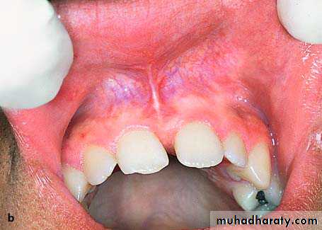 a. Congenital abnormalities, such as a hypertrophic frenum, etc.