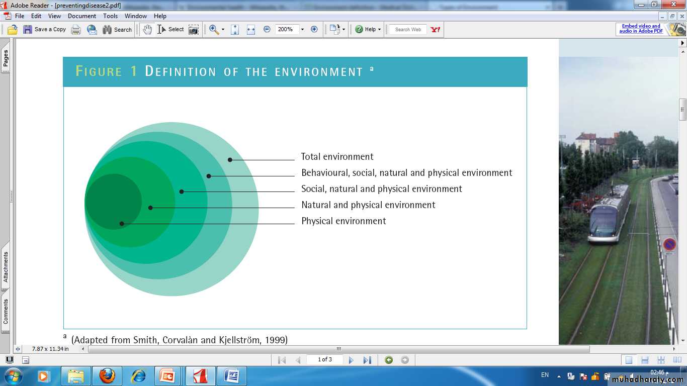 ‘…comprises those aspects of human health, including quality of life, that are determined by physical, biological, social and psychosocial factors in the environment. It also, refers to the theory and practice of assessing, correcting, controlling, and preventing those factors in the environment that can potentially affect adversely the health of present and future generations’ (WHO, 1993a)