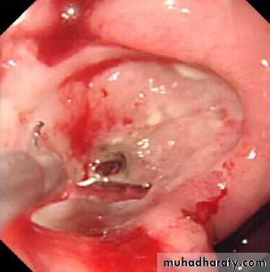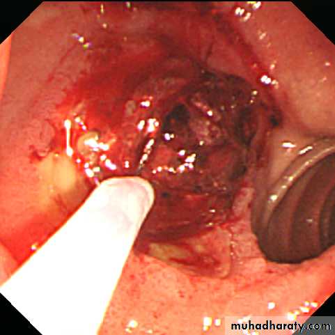 5.Endotherapy1. Bleeding PU: A variety of endoscopic methods have been described to control active bleeding from peptic ulcers. The most commonly used modalities are: a. Injection therapy(diluted adrenaline)