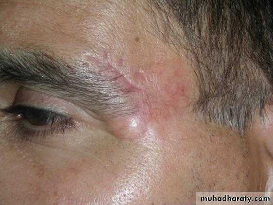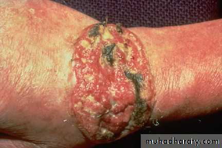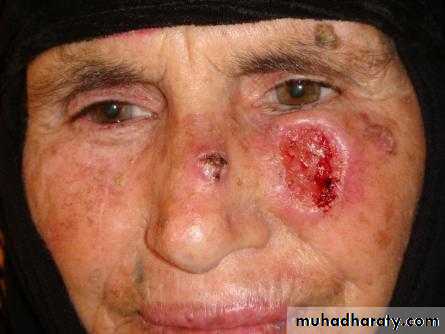 Treatment:Surgery: excision with 2-5 mm. healthy margin, & repair defect by skin graft or flap.