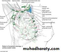 • Lateral quadrants to ant.axillary (pectoral) nodes.• Medial quadrants to parasternal nodes.
