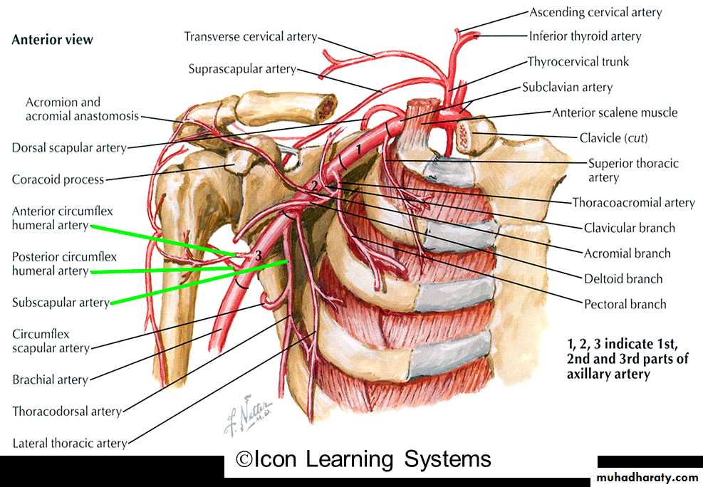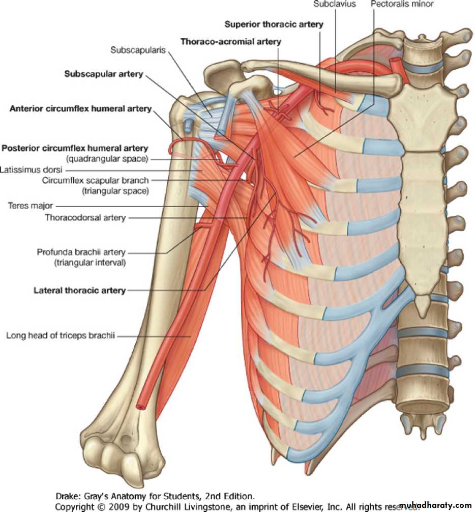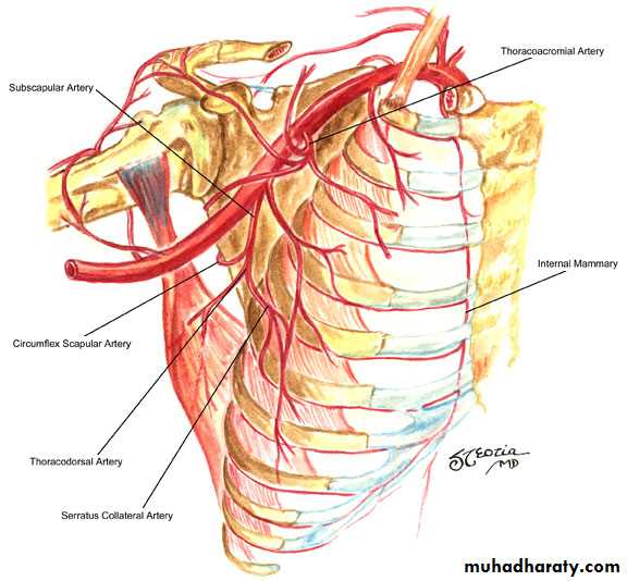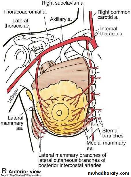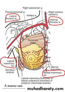• Perforating branches of internal thoracic a.• Intercostal arteries.